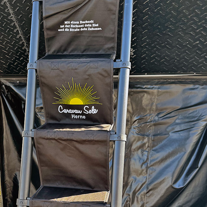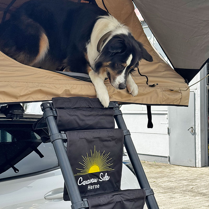 Die Konstruktion des Zeltes ist äußerst stabil und gibt Ihnen ein absolut sicheres Gefühl. Eine praktische, klappbare Leiter ermöglicht einen einfachen Einstieg in das Zelt.